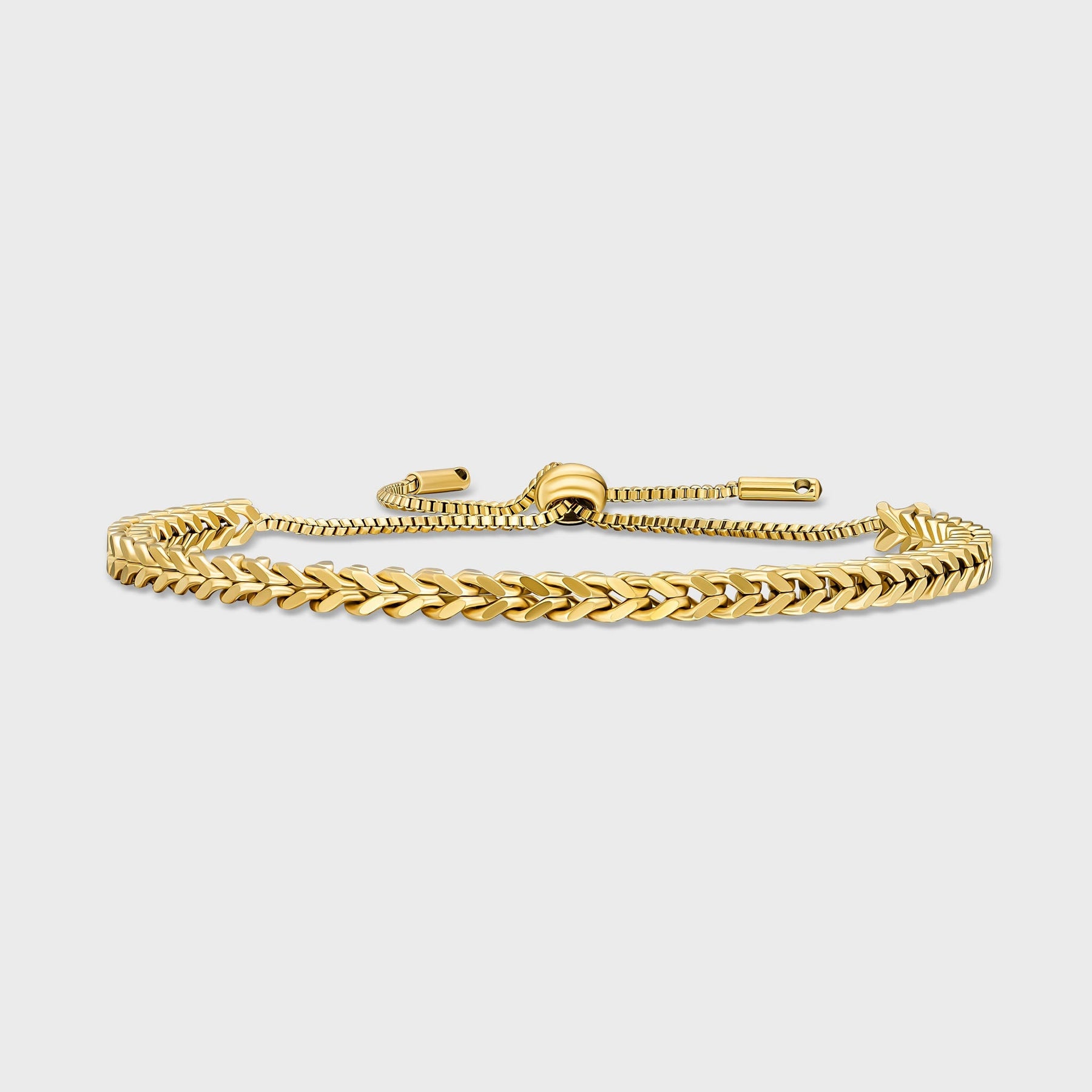 Introducing our 3mm Gold Franco Bracelet, a true statement piece for any fashion-forward individual. Handcrafted with the highest quality materials, this bracelet exudes luxury and sophistication with its unique franco link design. At a delicate 3mm width, it can be worn alone for a minimalistic look or layered with other bracelets to create a bolder statement. Perfect for both casual and formal occasions, our 3mm Gold Franco Bracelet is a must-have addition to any jewelry collection. Made with real 18K Gold Bonded.