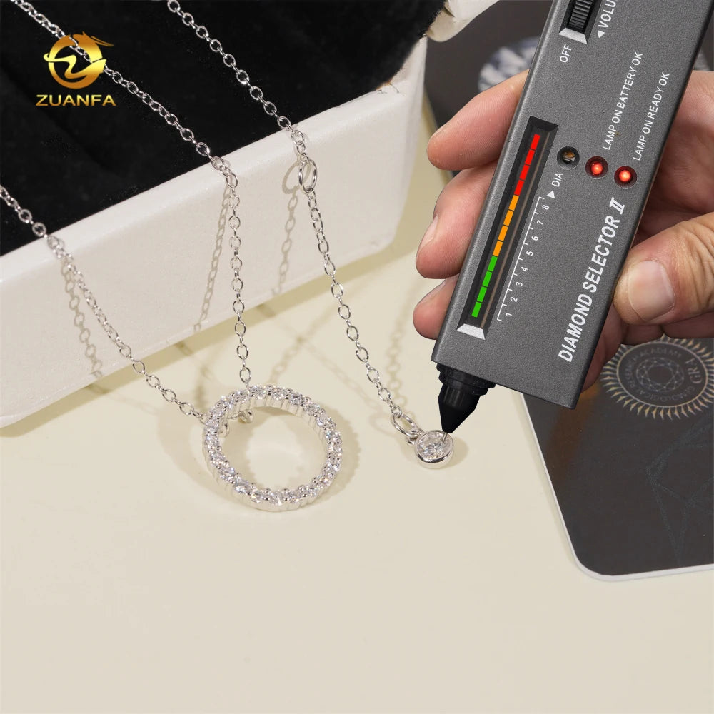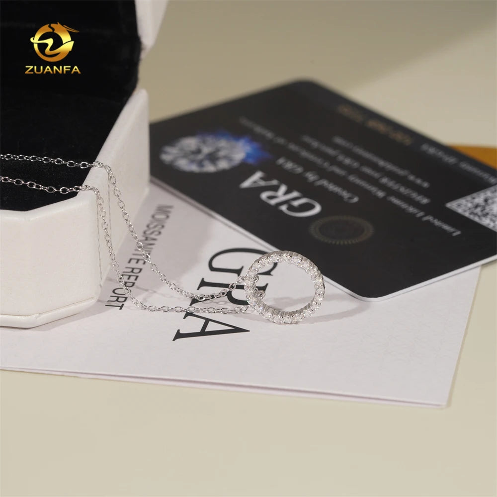 Fashion Women Jewelry Circle Moissanite Diamond Necklace Pendant Sterling Silver 925 Iced Out Charm Necklace