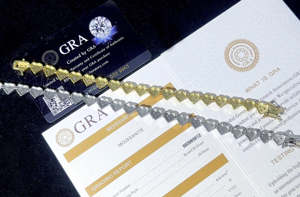 Every Corvanni piece comes with a verified GRA certification card, confirming the authenticity and grading of your moissanite stones. Each stone is individually tested to ensure it passes a real diamond tester, giving you complete confidence in the quality, brilliance, and performance of your jewelry. We take authenticity seriously — your piece is crafted to meet high standards of sparkle, durability, and luxury.