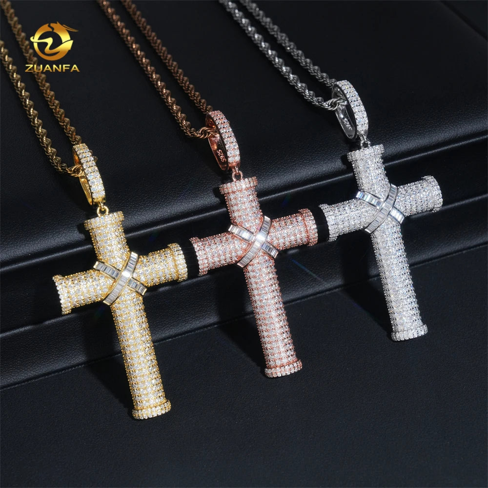 Ready to Ship Iced Out Cross Pendant Solid Silver With Moissanite Diamond Hip Hop Pendant