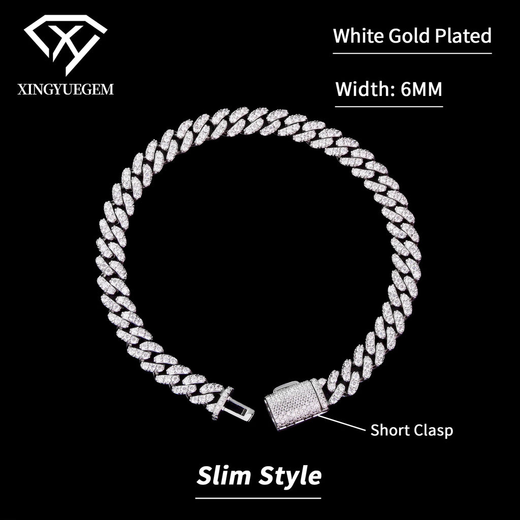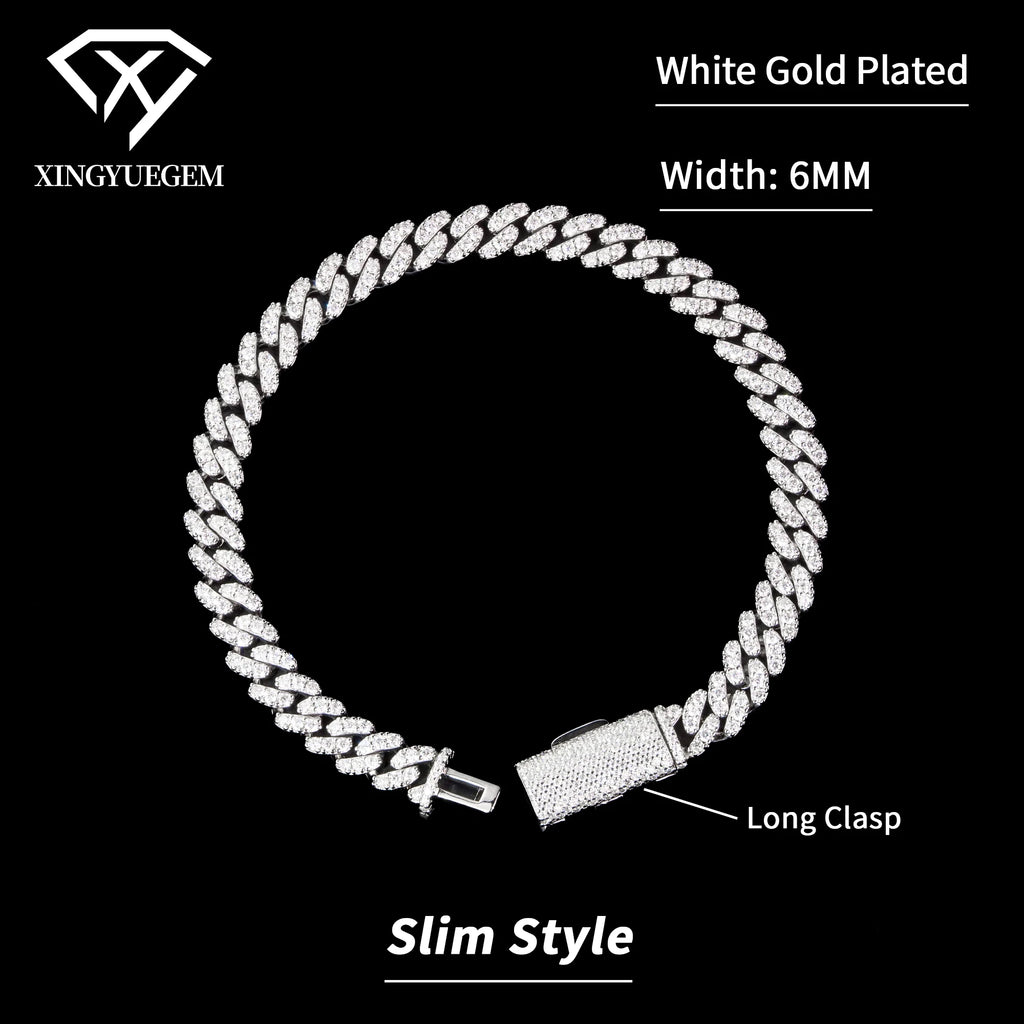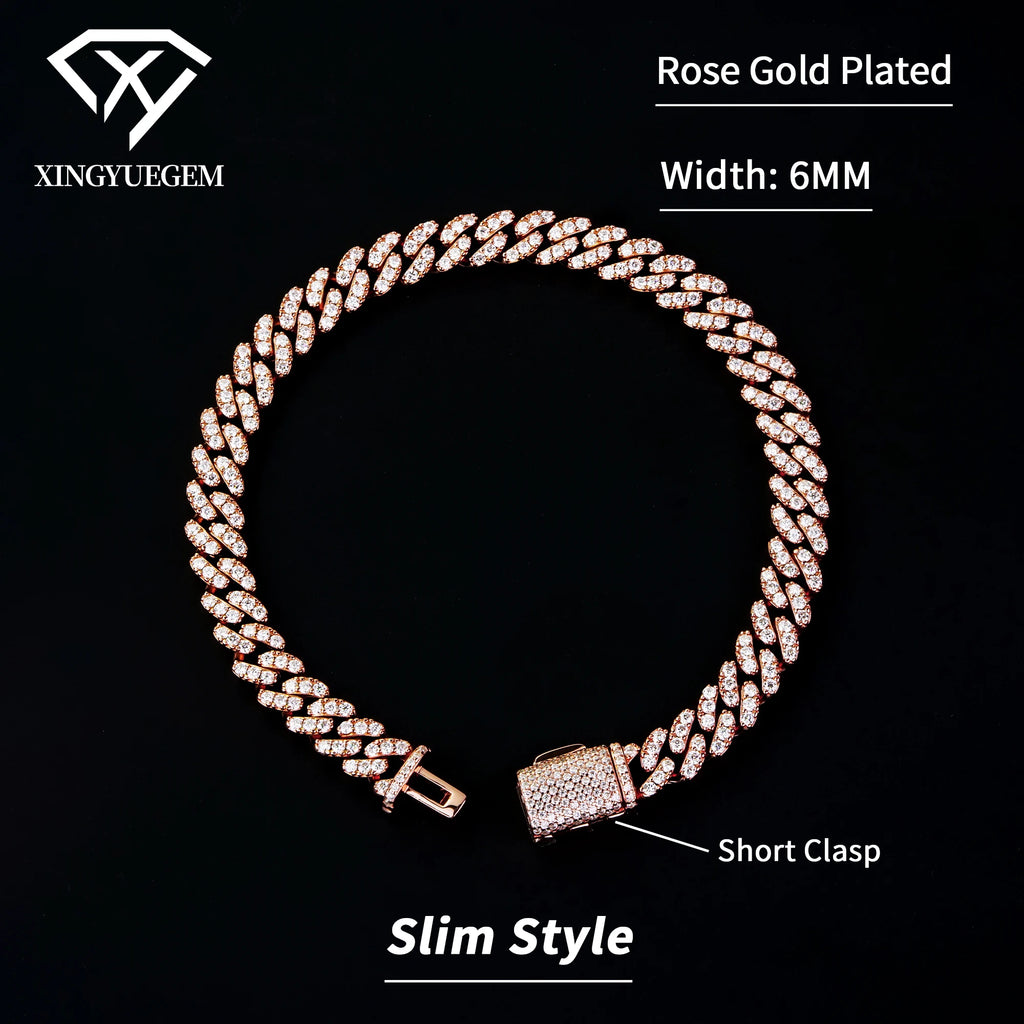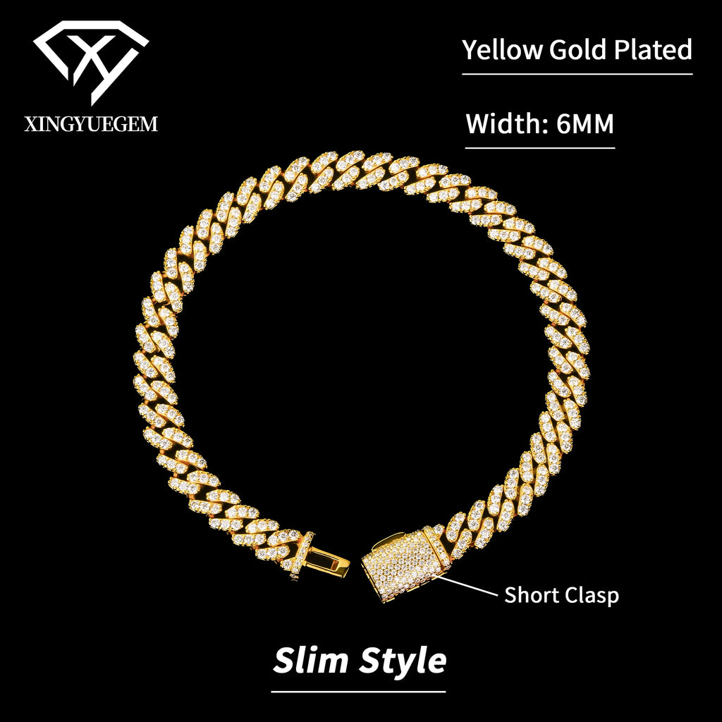 Spot Wholesale Unisex Hiphop Jewelry 6mm Mossanite Diamond 18k Gold Plated 925 Silver Cuban Link Bracelet Moissanite for Men